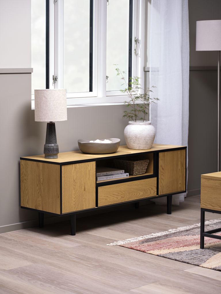 ODENSETV-stalak DENSE 2 vrata 1 ladica topli hrast boja/crna