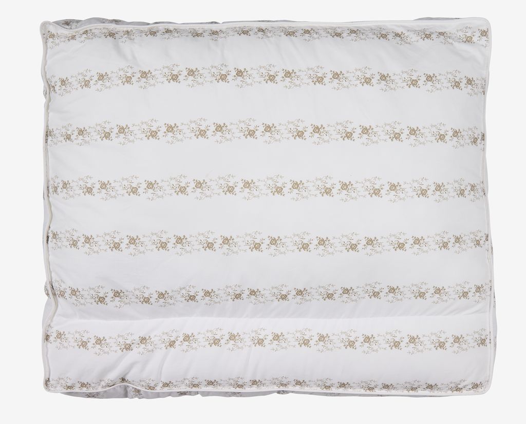 Ergonomski jastuk 50x60 cm s oblikovanim kvadratnim rubom koji omogućava da jastuk zadrži svoj oblik i pruži ravnomjeran oslonac. S jedinstvenim punjenjem od silikoniziranog vlaknastog paperja (100% recikliranog), 1000 g. Mekano, lagano vlaknasto paperje zadržava svoj volumen i lako se protresa. S mekanom navlakom od 100% pamučnog batista. Perivo na 60°C.