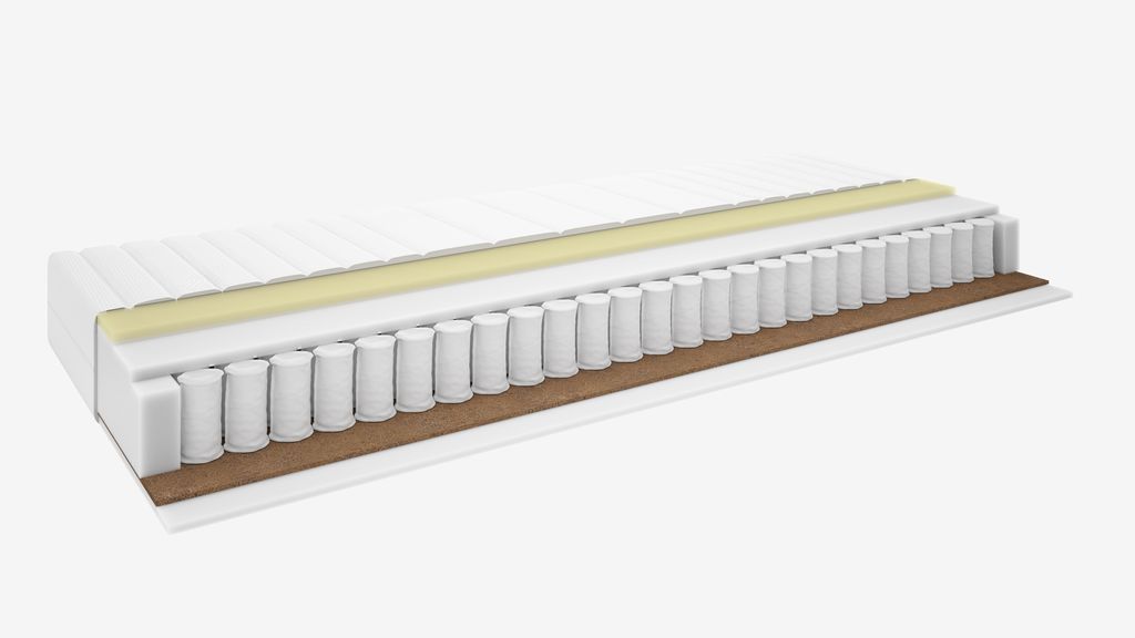 Dvostrani madrac s oprugama 90x190 cm s dvije razine tvrdoće i džepičastim oprugama (256/m²), podijeljen na 5 zona udobnosti. Madrac je punjen memorijskom pjenom koja smanjuje pritisak na tijelo i polieterskom pjenom na jednoj strani i kokosovim vlaknima za bolju ventilaciju i polieterskom pjenom na drugoj strani. Memorijska pjena oblikuje se u skladu s linijama tijela. Periva elestična navlaka od 100% poliesterskih vlakana (52% recikliranih) s laganim prošivom i funkcijom upijanja vlage. Visina: 20 cm.
